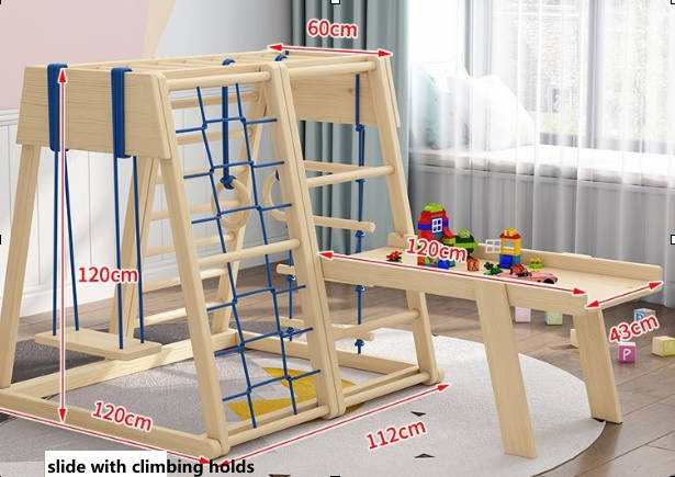 எங்கள் குழந்தைகளின் மர ஏறும் சட்டத்துடன் உங்கள் வீட்டில் ஒரு மினி சாகச பூங்காவை உருவாக்கவும்! Prods குழந்தைகள் மற்றும் இளம் குழந்தைகளுக்கு ஏற்றது, இந்த பிளேசெட்டில் ஒரு ஸ்லைடு, ஸ்விங் மற்றும் ஏறும் சுவர் ஆகியவை அடங்கும், இது மணிநேர சுறுசுறுப்பான வேடிக்கைகளை வழங்குகிறது.