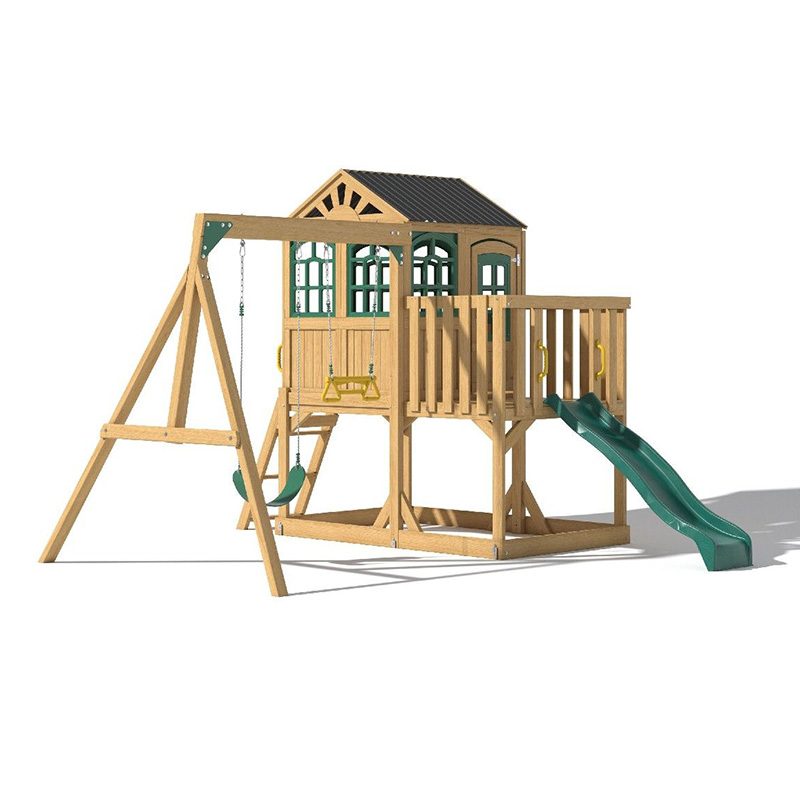 ஒரு பிரீமியம் மரமாக, ஹெம்லாக்கின் கடினமான அமைப்பு, நிலையான இயற்பியல் பண்புகள் மற்றும் சிறந்த ஆயுள் ஆகியவை தளபாடங்கள், கட்டுமானம் மற்றும் அலங்காரத்திற்கு சிறந்த தேர்வாக அமைகின்றன. இது மென்மையான செதுக்கல்கள், சுமை தாங்கும் கட்டமைப்புகள் அல்லது அன்றாட அலங்காரத் தேவைகள் என்றாலும், ஹெம்லாக் அவற்றைச் சந்திக்க முடியும், இது பல கைவினைஞர்களுக்கும் வடிவமைப்பாளர்களுக்கும் தேர்வு செய்யும் பொருளாக அமைகிறது.அகல வழிஹைலைன் ரிட்ரீட் ஸ்விங் செட் 100% எஃப்.எஸ்.சி உயர்தர ஹெம்லாக் மூலம் நிலையான நிர்வகிக்கப்பட்ட காடுகளால் ஆனது, முக்கியமாக மரம் பிளவுபடாததால், வலுவான இயற்கை வானிலை எதிர்ப்பைக் கொண்டிருப்பதால், மர அழுகலை எதிர்க்கும், மேலும் மரம் நீர் சார்ந்த சாயத்துடன் சிகிச்சையளிக்கப்படுகிறது, இதற்கு கிட்டத்தட்ட பராமரிப்பு தேவையில்லை. இந்த இயற்கை சாயம் (ரசாயனங்கள் இல்லாமல்) சுற்றுச்சூழல் நட்பு மற்றும்குழந்தை-பாதுகாப்பானது, குழந்தைகளின் ஊசலாட்டங்களுக்கு இது சரியான தேர்வாக அமைகிறது.